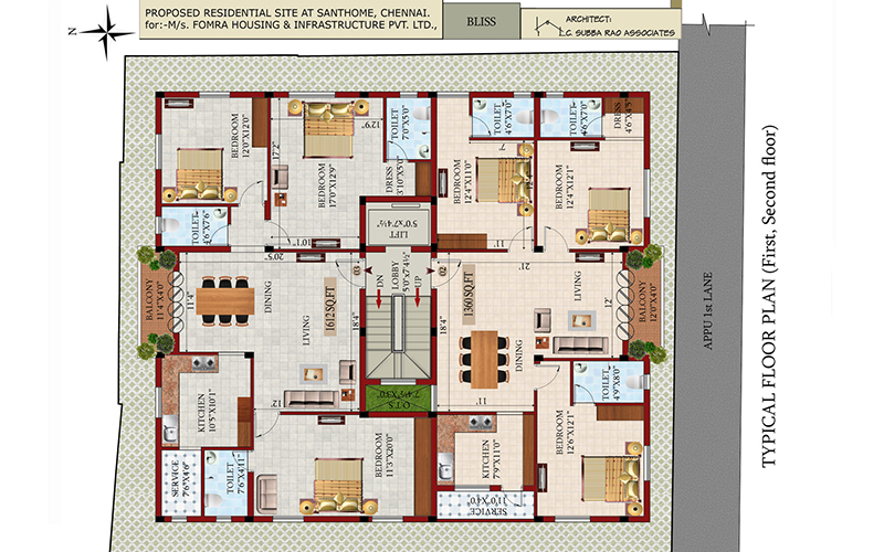 The stunning 3 BHK homes at Fomra Bliss are spread from 1360 - 1614 sq.ft and are created from the finest materials that you'll absolutely fall in love with at Santhome, Chennai.